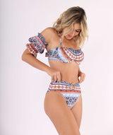 Our fabrics are made of 82% polyester and 18% spandex, have UV-pretection and are carefully sourced from Latin American suppliers. Our prints are all made by very talented local artists, handcrafted and digitally printed on our fabrics to provide you with exclusive pieces.