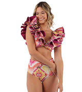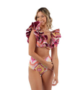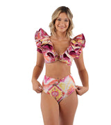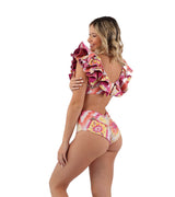 Our fabrics are made of 82% polyester and 18% spandex, have UV-pretection and are carefully sourced from Latin American suppliers. Our prints are all made by very talented local artists, handcrafted and digitally printed on our fabrics to provide you with exclusive pieces.